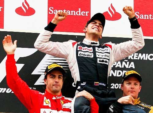 Lo spagnolo guadagna fino ad avere mezzo secondo da Maldonado poi rallenta, perché finisce le gomme, e arriva a essere insidiato da Raikkonen, buon terzo. Dopo la gara prende fuoco per motivi da capire il box della Williams. La classifica finale recita quindi: