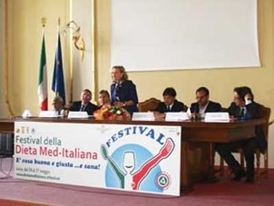 Clicca per Ingrandire Se è vero che chi ben comincia è a metà dell’opera, allora si può tranquillamente sostenere che il “Festival della Dieta Med-Italiana” di Lecce ha superato di alcune lunghezze quella ‘metà’. L’inaugurazione avvenuta la mattina del 24 maggio si è svolta nel migliore dei modi, sia nella fase “istituzionale” alla Sala Dante dell’Istituto Costa di Lecce sia nella operativa in piazza Sant’Oronzo, dove le migliori aziende locali della produzione agroalimentare tipica hanno aperto gli stand e offerto degustazioni di eccellenza a pubblico e tantissimi turisti giunti appositamente in città, con somma soddisfazione degli albergatori che hanno registrato il tutto esaurito in quasi tutte le strutture.