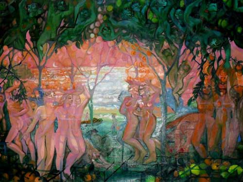 Clicca per Ingrandire Lidia Croce sarà ospite nel mese di giugno del Palazzo di città di Rodi Garganico con una serie di opere pittoriche dedicate al mare, fra cui una intitolata “Agrumeto Garganico” (foto del titolo, part.; ndr). Quest’opera (olio su tela, mt. 3,50x2) si relaziona completamente al territorio della cittadina garganica, non solo per il paesaggio marino che evidenzia il mare di Rodi e il suo promontorio, ma soprattutto per l’interpretazione pittorica del suo più importante commercio dei secoli scorsi, quello degli agrumi che partendo dal porticciolo di Rodi arrivavano in tutta Europa sui caratteristici “trabaccoli”. Ancora oggi tale commercio è fiorente e stimato, vista l’attribuzione del marchio igp (indicazione geografica protetta) alla locale Azienda Ricucci che porta avanti la secolare tradizione di famiglia.