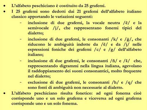 Necessario, per capire, fare un piccolo passo indietro. Per assolvere al compito prefissosi, il Labombarda ha sentito l’urgenza di proporre una scrittura corretta, scientifica, tanto poco accademica quanto più aderente agli effetti acustici dei fonemi, soggetta a un alfabeto ben codificato. Da qui, con l’ausilio di cultori e appassionati di tale attività, ha dato vita e pubblicato con Rocco Tedeschi (per il peschiciano) e Patrizia Ugolotti (per l’inglese… un tocco esotico) a una “grammatica peschiciana” osservata alla lettera nella traslitterazione dei periodi italiani, all’origine espressi in vernacolo peschiciano. E ancora da qui, ma specialmente dagli appassionati a volte accesi scambi di battute, opinioni e convincimenti dei diversi cultori in materia (abbiamo scoperto che non siamo i soli!), l’aperta consapevolezza di trovarsi di fronte a una voglia rampante di trasferire il problema, se di problema trattasi, su uno scenario più ampio e qualificato.