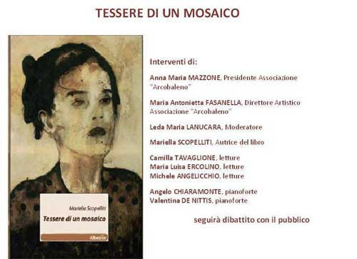 21 - Largo del Conte, ore 21: l’Associazione Culturale e Musicale “Arcobaleno” di Peschici presenta il libro “Tessere di un mosaico” di Mariella Scopelliti (Edizione Albatros)