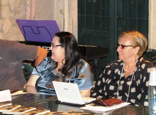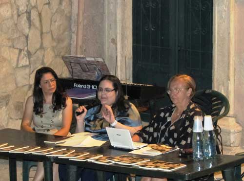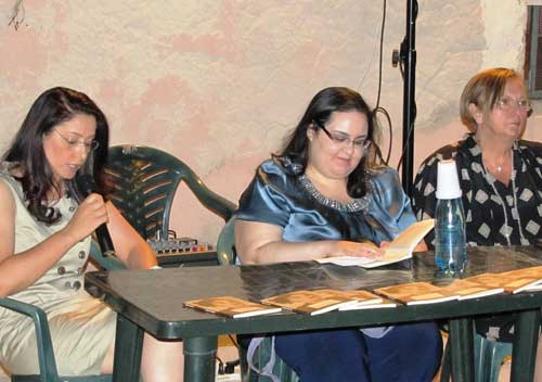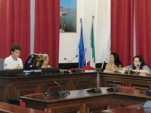 Clicca per Ingrandire L’accogliente scenario di Largo del Conte a Vico del Gargano (foto del titolo; ndr) e la Sala Consiliare del Comune di Peschici (foto 1 sotto) hanno fatto da cornice a due serate culturali organizzate dall’Associazione musicale “Arcobaleno”, col patrocinio dei due Comuni. Il 21 e 23 luglio, infatti, è stato presentato il romanzo “Tessere di un mosaico” scritto da Mariella Scopelliti, giovane autrice calabrese, la quale ha tenuto a sottolineare nel suo intervento l’emozione provata nel trovarsi nella nostra terra, mai visitata prima, e la bellezza della zona garganica. Le serate sono state introdotte da Anna Maria Mazzone e Maria Antonietta Fasanella, rispettivamente presidente e direttore artistico dell’Associazione. A moderare gli interventi è stata Leda Maria Lanucara, docente del liceo classico europeo Campanella di Reggio Calabria, legata alla Scopelliti da profonda amicizia (foto 2-3-4 sotto; ndr).
