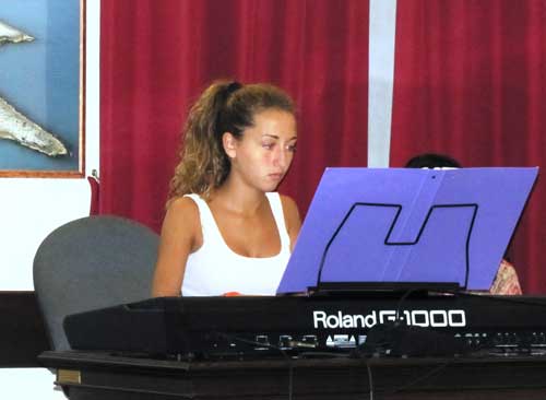 Durante gli spezzoni letti il pubblico ha potuto immedesimarsi realmente con Caterina Giusti, protagonista del romanzo, e ciò è potuto succedere sia per la maestria dei lettori nell’interpretare il testo, sia grazie alle suggestioni suggerite dal suono del pianoforte che ha accompagnato le letture, pianoforte cui hanno dato voce Maria Antonietta Fasanella, Angelo Chiaramonte (foto 8) e Valentina De Nittis (foto 9). La musica però è stata costantemente protagonista in quanto i pianisti Chiaramonte e De Nittis hanno aperto e concluso le serate con pezzi di Gershwin e Einaudi.