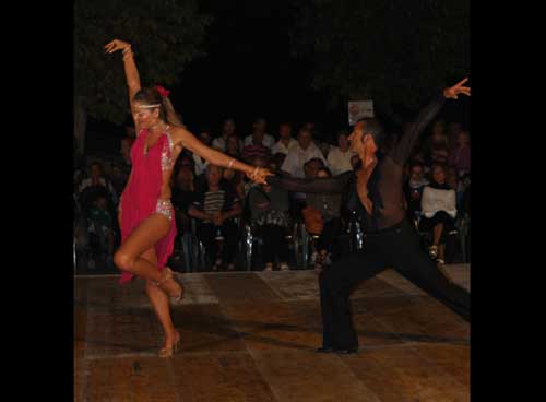 Spettacolo danzante e gara di ballo sono stati organizzati dalla scuola di ballo “Havana Coche” che ha fatto scendere in pista i suoi migliori ballerini con l’esibizione dei maestri Lucia Frascone, Giovanni Di Pasqua, Antonella De Felice, Raffaele Ferrante, Simone Gentile e Giovanni Carbonara. Alla serata ha partecipato anche la scuola Danzarte di Daniela Bognani. Spazio a tutte le danze del mondo con la passionalità del tango argentino, l’allegria dei balli caraibici, la forza trascinante dei balli di gruppo, l’eleganza del ballo da sala e, ancora, i ritmi del liscio e dei latino-americani. La direzione artistica dell’evento è stata curata da Raffaele Ferrante e la serata è stata presentata da Graziana Mignogna. Oltre alle esibizioni dei maestri, si è svolta la gara di ballo amatoriale aperta a chiunque volesse misurare le proprie abilità.