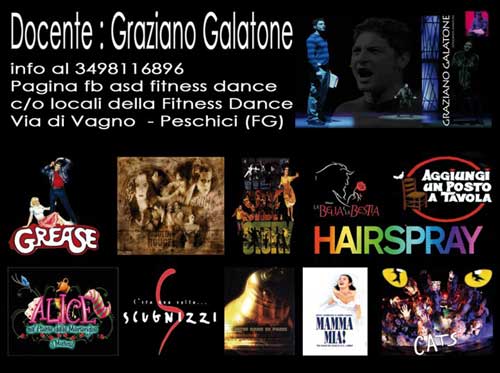 Chiunque necessiti di maggiori informazioni può contattare il cellulare 349.811.68.96, o la pagina facebook di “ASD fitness Dance”, o presentarsi direttamente alla sede dell’Associazione. L’occasione è decisamente ghiotta in particolare per la presenza di un autentico “animale da palcoscenico” qual è Galatone, le cui potenzialità didattiche si sono già manifestate con l’adattamento del lavoro di Cocciante, operato coi ragazzi dell’Istituto Comprensivo “Libetta” di Peschici, e dalla bravura della coppia di ballerini titolari della scuola di danza.