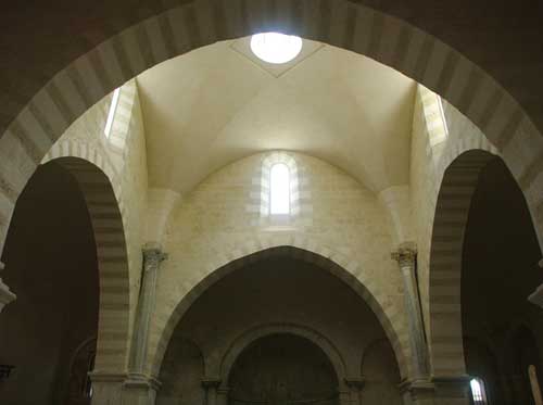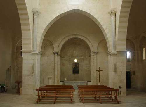 Spettacolare il nuovo aspetto interno della chiesa (foto 2): l’asportazione dell’intonaco ha evidenziato una muratura bicroma: pietra garganica alternata al tufo che mettono in evidenza il gioco degli archi (foto 3) di stile medievale. Si è altresì accertato che la chiesa fino al 1.500 era priva di copertura, le funzioni si svolgevano nella cripta.