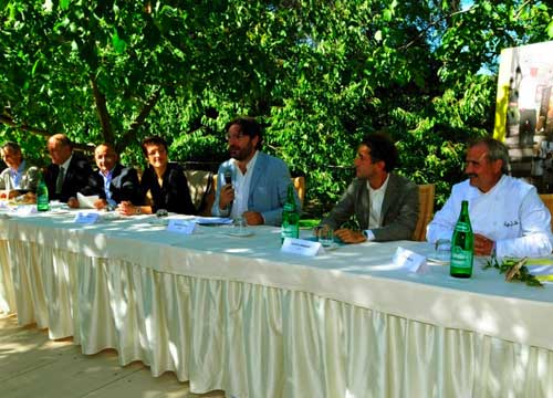 “Sono stati due giorni pieni di grandi soddisfazioni per tutti noi”, afferma al termine della 48 ore di domenica 14 e lunedì 15 ottobre. “Abbiamo visto arrivare i nostri illustri ospiti, abbiamo vissuto il loro stupore e spesso abbiamo incrociato quello sguardo inconfondibile di quando per un attimo si torna bambini”. Certamente il Don Chisciotte della Daunia questa volta era in ottima compagnia, attorno a un tavolo risplendevano le armature di sei preziosi cavalieri: il creativo Felice Limosani, il docente di economia e organizzazione aziendale Marco Eugenio Di Giandomenico, Stefania Moroni del celebre ristorante “Aimo e Nadia”, il gourmet Federico Menetto e il cantautore Francesco Baccini, condotti con abilità e sagacia dal giornalista Giacinto Pinto (foto 2).