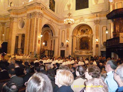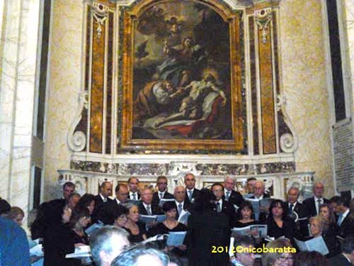 Clicca per Ingrandire “Sette anni come i veli che avvolgono l’icona della nostra amatissima Madonna” è l’incipit che mi sento di comunicare a tutti dopo la riapertura della Cattedrale di Foggia (foto del titolo e 1-2 sotto; ndr). Dal 2005 la comunità foggiana era orfana della sua chiesa maggiore, luogo di culto e devotissimo per amare e ammirare l’Iconavetere (foto 3). Con l’incipit appena scritto ho risposto a una collega della stampa mentre stavo iniziando la funzione canora col ‘mio’ coro, “Cappella Musicale Iconavetere” di Foggia (foto 4), nella cattedrale. Istituzione canora fondata da circa trent’anni (il 2013 ne ricorre il trentennale), ha nuovamente pregato cantando nella sua ‘casa’, nella sua sede istituzionale. Un coro voluto fortemente dall’allora (ora cardinale) mons. Salvatore De Giorgi e dal compianto Maestro di Cappella, il professor Renato Lopolito, con la complicità benevola della mia famiglia e di quella di mons. De Stasio.
