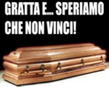 Clicca per Ingrandire  E' stata ribattezzata la lotteria del "Gratta e speriamo che non vinci!" la sottoscrizione a premi promossa per l'estate 2008 dall'Associazione "Borgo Magna" di San Marco in Lamis, che all'11° premio offre addirittura un intero funerale.