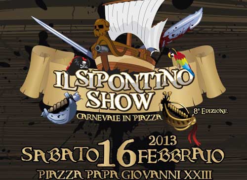 Il clou del Carnevale 2013 sarà costituito dalle sfilate diurne e notturne. Il debutto il dieci febbraio prossimo (le altre date: 11-12-16) quando con “Le Meraviglie” sfileranno in un primo assaggio gruppi di maschere e carri allegorici. Ma le attrazioni sono tante, tutte da gustare partecipando. Da aggiungere che in contemporanea alla presentazione, c’è stata quella della ottava edizione di “IlSipontino Show”, la festa in Piazza della "Notte Colorata" (foto 1 sotto) che si svolgerà il 16 febbraio quando in Piazza Papa Giovanni XXIII, location storica dell'evento, si tornerà a ballare nella serata clou della 60ª edizione del Carnevale che in chiusura di sfilata regalerà musica, balli (foto 2, repertorio), colori, luci ed effetti speciali (foto 3, repertorio) ai gruppi mascherati, ai piedi del palco, e ai tanti spettatori, ospiti e locali, che seguiranno in massa l'ultima notte di baldoria delle manifestazioni carnascialesche.