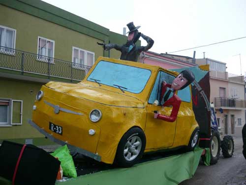 Oltre ai carri, la sfilata sarà caratterizzata da balli, canti e tanta musica per strada. Il 2012 i carri allegorici più significativi sono stati quelli che hanno simboleggiato la crisi economica, i prezzi altissimi dei carburanti col carro denominato “Caro Petrolio” (foto 1 sotto; ndr) ma anche temi più leggeri come il Festival della Canzone Italiana (foto 2) con un carro presenziato da personaggi come Belen, Renato Zero e Loredana Bertè. Non solo, i più piccoli hanno realizzato un carro avente come tema il cartone animato “Lupin” (foto 3) con la rappresentazione della mitica 500 gialla.