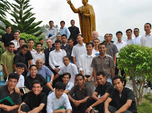 Il viaggio fu lunghissimo e passò in un attimo. Era ormai l’Asia, un altro mondo. Anzi l’isola sacra delle Filippine, Cebu, la terra del Santo Niño. Nel giardino del noviziato dei Missionari Scalabriniani, posto in altura sopra una città di tre milioni di abitanti, sulla punta più esposta la statua di Giovanni Battista Scalabrini, padre dei migranti, pareva un cannocchiale per guardare il mondo da vicino. Sotto, la foto e una bella frase dedicata a mamma Concetta. Una corona di giovani seminaristi vietnamiti, indonesiani e filippini, straordinariamenti sorridenti (foto 2), già dalla prima sera improvvisarono una veglia di preghiera.