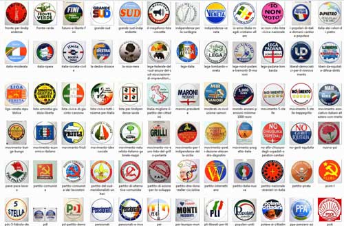 Com’è noto, gli schieramenti in campo sono: un raggruppamento del centrodestra con PdL-Lega Nord, la Destra, Fratelli d’Italia, Grande Sud; un’aggregazione cosiddetta centrista formata da UdC-FLI-Con Monti per l’Italia (candidato presidente Monti); una unione di centro-sinistra con Pd-SEL-CD che candida Bersani presidente; liste non aggregate a coalizioni come il Movimento 5 Stelle (Beppe Grillo), Rivoluzione Civile (l’ex magistrato Antonio Ingroia) sostenuta anche da Federazione della Sinistra-IdV-Verdi, Movimento Arancione; altre formazioni minori.