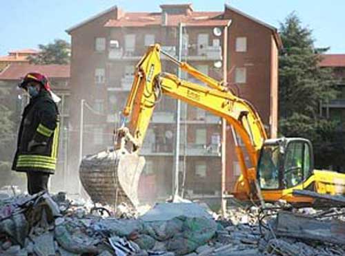 Molte, moltissime macerie, ma la Torre è lì, il Comune pure… più o meno.