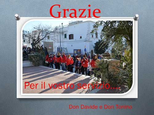 - Itt di Peschici: Apruzzese Arianna, Forte Silvia, D'Amato Andrea, D'Amato Mario, Pirro Raffaella, Capraro Raffaella, Ottaviano Federica, Piemontese Matteo, De Nittis Giuseppe, Giuliani Orazio, Martella Antonella, Flaminio Maria, Masella Maria, De Noia Raffaele, Pupillo Antonello, Biscotti Giuseppina, Raniere Elia, Mazzone Antonio, Zaffarano Michele