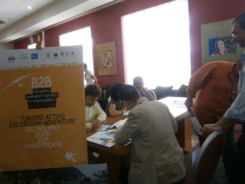 A stimolare la discussione illustri interlocutori come l’assessore regionale al Turismo Silvia Godelli, il direttore generale di PugliaPromozione Giancarlo Piccirillo, il direttore di AssoAlbergatori di Savona Carlo Scrivano e l'amministratore di FourTourism Joseph Ejarque. La massiccia e variegata composizione del parterre dei partecipanti ha reso tangibile la possibilità della messa in rete di tutti i servizi del territorio. Non a caso molto successo ha riscosso il momento degli incontri B2B (foto 2 sotto; ndr) fra titolari di strutture ricettive e operatori che hanno avuto modo di conoscersi e scambiarsi informazioni.