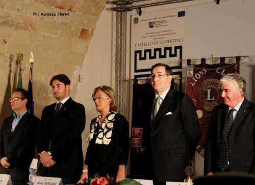 Dopo i saluti di Maurizio Trinchera presidente Lions Club Copertino Salento, Giuseppe Pede presidente Leo Club Copertino, Ornella Castellano presidente Fidapa Sezione di Copertino, Giuseppe Rosafio sindaco di Copertino, Caterina Raguso direttrice Castello di Copertino e Norberto Pellegrino delegato Zona 15–Distretto Lions 108 AB, ho visto i loro volti illuminarsi quando l’altoparlante ha diffuso la voce inconfondibile di don Tonino Bello. Proveniva dal CD “Il Bello dei Giovani” (Ed. Insieme), ma sembrava provenire dal Cielo.