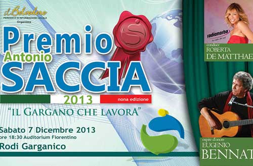 Il 2005, per iniziativa di un piccolo periodico locale, a Ischitella si diede vita al Premio Antonio Saccia. Allora come oggi si voleva, in questo evento, testimoniare la gratitudine delle istituzioni garganiche ad alcune personalità che nell’espletamento del proprio impegno professionale, contribuiscono all’accrescimento culturale ed economico del territorio, oltre a corrispondere, onore e lustro a questa terra. Ma parametro privilegiato di valutazione è l’impegno che ognuno degli insigniti ha corrisposto al “sociale”, il tempo e le risorse dedicate al superamento delle criticità collettive, alle devianze, all’indigenza, ai bisogni e alle necessità di una popolazione fiera e tenace troppo spesso divisa da campanilismi e assurde rivalità che hanno purtroppo determinato uno sviluppo limitato non corrispondente alle reali potenzialità.
