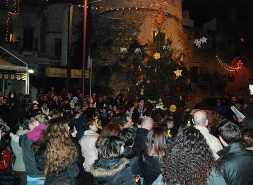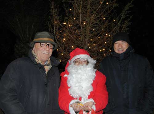 Nelle foto sotto, l'accensione dell'albero di Natale il 2012 (1) e gli attuali sindaco (Francesco Tavaglione) e assessore a Spettacolo e Turismo (Donato Di Milo) ai lati di Babbo Natale impersonato da Elia “Mammamamma” Salcuni (2)