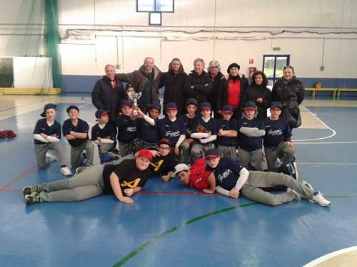 Clicca per Ingrandire La terza tappa dei Winter Games ha visto i ragazzi foggiani al primo posto ex-aequo. Secondi per differenza punti. Giornata fantastica quella disputata al PalaCUS di Salerno, dove era di scena la terza tappa dei Winter Games di baseball. Nonostante la defezione per causa di forza maggiore del Taranto, nella giornata si sono visti netti progressi delle tre squadre partecipanti: Salerno, Foggia e Matino, che hanno dato vita a tre gare di Baseball vere e proprie, cosa difficile da vedere nella categoria ‘Ragazzi’.