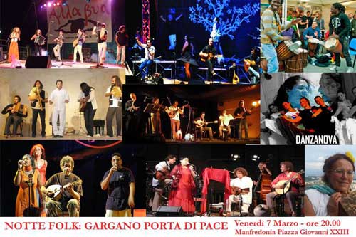 Si prosegue il giorno dopo (sabato 8 marzo con il convegno "Gargano Porta di Pace" al quale prenderanno parte Angelo Riccardi (sindaco di Manfredonia), Silvia Godelli (assessore al Mediterraneo Regione Puglia), Franco Ognissanti (consigliere regionale), Antonella Varrecchia (assessore al Turismo comune di Manfredonia), Michele De Meo (Manfredonia Turismo). Relatori: Mauro Gioielli (demologo-giornalista), Faisal (musicista), Patrizia Lopez (musicista), Pino Petraccia (esperto di intercultura) e Michele Mangano. Un evento che attirerà a Manfredonia migliaia di appassionati, e non, della musica etno folk e rilancerà ulteriormente la città verso traguardi sempre piu prestigiosi.