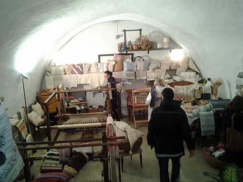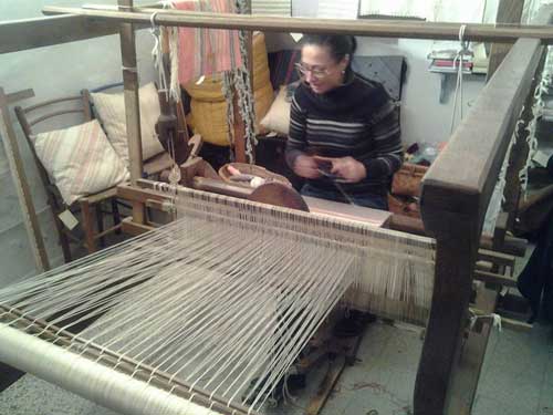 L’interesse che negli anni ho saputo creare nei turisti è notevole. Il mio laboratorio è meta e tappa obbligata per molti di loro, in quanto unico, o ultimo, testimone della nostra cultura e tradizione del telaio, punto d’incontro e di riferimento in un mare di botteghe di finta tipicità. Purtroppo non posso dire di aver suscitato lo stesso interesse nei nostri amministratori e in Enti vari. E, spiace dirlo, neppure nei miei concittadini. Chi viene nel mio laboratorio, situato in un locale tipico di fine 800, nel centro del paese, ha l’opportunità di vedere i miei telai in azione e tutti i manufatti che produco: asciugamani di lino con disegni in “pizzo spagnolo” originali dell’800, copriletti e tovaglioli in lino e canapa nel tessuto conosciuto come “u sckacck”, tappeti di lana, cuscini e borse in tecnica mista: spighette, righe e denti di cane. Tessuti apprezzati soprattutto per la finezza dei filati e la raffinata semplicità.