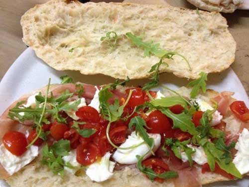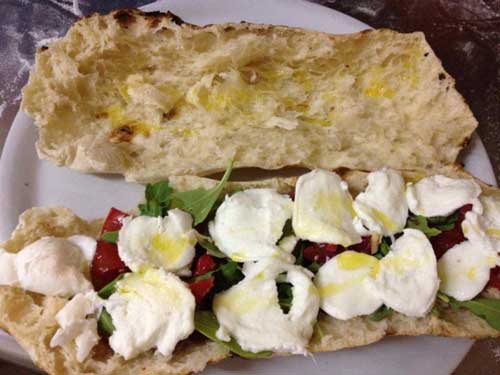 del pastore: pomodoro tritato, mozzarella tagliata a fette, spolverata di sale, olio d’oliva e origano; ‘du spruatorë’: olio d’oliva, cacioricotta di Peschici, verdure di campo.