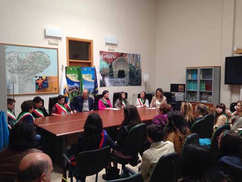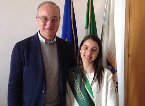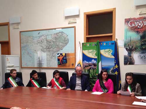 Clicca per Ingrandire Il presidente del Parco Nazionale del Gargano, Stefano Pecorella, ha accolto nella sede dell’Ente i minisindaci del Gargano per l’elezione della carica di minipresidente del Parco, conquistata quest’anno da Isabella Taurisano, dell’istituto Comprensivo “Torelli-Fioritti” di Apricena. I minisindaci dei Comuni garganici aderiscono alla Rete Nazionale “Coloriamo il nostro futuro-Consiglio Comunale dei ragazzi, minisindaci dei Parchi Nazionali e delle Riserve d’Italia”, progetto nazionale che coinvolge dal 2002 un numero crescente di scuole fino a raggiungere 72 istituti in undici Parchi d’Italia.