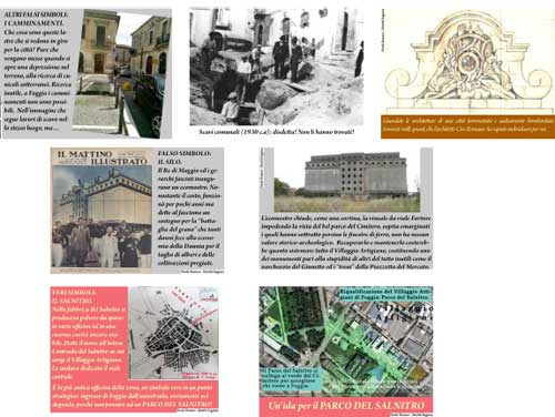 Ma quello che fra tante suggestioni ha più attirato l’attenzione del pubblico sono altri falsi simboli. Romano ha presentato una foto inedita degli anni trenta che dimostra inoppugnabilmente quanto i camminamenti siano frutto della fantasia di qualche ‘studioso’ locale ignorante e fuorviato cui purtroppo le Amministrazioni credono al punto da ricoprire con costose lastre di vetro i buchi che si aprono nel terreno. Falso simbolo è anche il silo, monumento alla “battaglia del grano” di Mussolini (da Romano definito un ‘ecomostro’) che rovinò l’agricoltura per il taglio di tutte le coltivazioni pregiate. Infine un vero simbolo: l’officina del Salnitro, la più antica impresa artigiana conosciuta, che dette il nome a tutta la contrada su cui sorge il Villaggio Artigiano ma non gode nemmeno del beneficio di una strada. Romano propone che si demolisca l’ecomostro del silo e si riqualifichi la zona costituendo un Parco del Salnitro, bigliettino da visita della città per chi vi entri dall’autostrada. Una conferenza densa di novità rispetto al panorama degli studi locali spesso asfittico e ripetitivo.
