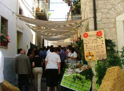 Clicca per Ingrandire Formaggi al tartufo, miele millefiori e liquore di zafferano sono stati solo alcuni della grande carrellata di prodotti presentati alla Fiera del prodotto tipico di Roseto Valfortore. Gli stand, disposti in una caratteristica via del centro storico di uno dei borghi più belli d’Italia, hanno accolto numerosi ospiti provenienti dalla provincia di Foggia e non solo. Erano presenti infatti anche i “Vietato fumare”, trio comico che si è esibito a Zelig Off, e Luigi de Filippo, un artista proveniente dalla trasmissione “Amici”, tutti di origine campana.