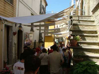 A tagliare il nastro (foto del titolo; ndr) l’assessore provinciale al turismo, Nicola Vascello, insieme al sindaco di Roseto, Lucilla Parisi, accolti poi dall’inno di Mameli suonato dalla banda del Comune. Le due autorità hanno iniziato quindi a visitare tutti i vari banconi, già presi d’assalto dalla gente attratta dalla grande qualità dei prodotti offerti. Come per i calzoni ripieni di ricotta della signora De Rosa, un dolce tipico di Roseto, o i tipici prodotti del Comune dauno: miele e tartufi. Un miele “rubato” alle api, come ha detto scherzando l’apicoltrice, e un tartufo - da cui si ricavano ottimi sottoprodotti - scovato dal fiuto di un cane, il cui padrone poi estirpa e raccoglie con utensili appositi. E ancora: pane, pizza e vino di San Bartolomeo in Galdo, Comune limitrofo a Roseto ma in provincia di Benevento.