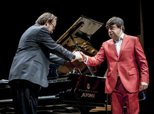 Clicca per Ingrandire Con tanta musica, gastronomia, filosofia, dibattiti, laboratori, il festival 2014 rivolge uno sguardo positivo ma non ingenuo, verso il Mezzogiorno e il Mediterraneo. E dieci! Dal 18 al 27 luglio a Monte Sant'Angelo torna FestambienteSud con l'edizione del decennale del festival nazionale di Legambiente per il Sud Italia. Gli storici componenti della band musicale degli Area-International POPular Group (Patrizio Fariselli, Ares Tavolazzi e Paolo Tofani), per il secondo anno autori delle scelte musicali del festival, hanno chiesto alla pop star Elio di aprire il cartellone musicale. Elio, accompagnato dal pianista Roberto Prosseda (foto del titolo; ndr), si esibirà col suo spettacolo “Bianchi, Rossini e Verdi”, omaggio che l'estroso vocalist delle ‘Storie Tese’ dedica in un concerto solista alla musica lirica italiana.