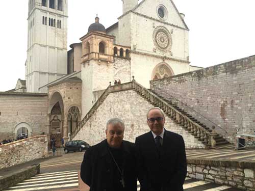Mons. Giuseppe Piemontese = I Padri Custodi del Sacro Convento che si sono succeduti negli anni hanno propiziato e favorito l’incontro e la realizzazione di questo momento civile e religioso. Quasi un sogno. Un Patto d’amicizia rafforza e rilancia legami di fraternità, di condivisione e di unione. La terra di Puglia non era sconosciuta agli assisiani, nonché a Francesco, già prima della sua conversione. Terra mèta di pellegrinaggi da ogni parte del mondo, si recavano a visitare i Santuari di San Michele sul Monte Gargano e di San Nicola a Bari ... La provincia francescana di Puglia, una delle prime dodici province madri dell’Ordine il 1217, suddivisa in due il 1230, diede vita a nord alla provincia “Sancti Michaelis Arcangelis de Monte Gargano”.