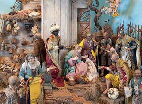 L’idea di far rivivere la scena della Natività maturò in Francesco al rientro dalla Terrasanta, per l’emozione provata alla vista dei luoghi dove era vissuto Gesù. Stando ai documenti, il presepe popolare, diffuso non solo nelle chiese ma anche nelle case dei privati cittadini di varia estrazione sociale, si affermò in Puglia nell’età della Controriforma, seguendo i dettami del Concilio di Trento sulla devozione a santi, Madonna e Bambin Gesù. Portatori e diffusori furono gli Ordini Religiosi, primi fra tutti i francescani, poi i domenicani, i barnabiti, i teatini, i gesuiti. Furono i gesuiti a ‘strafare’ infondendo, nell’umile presepe francescano, il trionfalismo cattolico, l’esaltazione dell’immagine, la profusione di ornamenti, la teatralità e l’estetismo ridondante: terreno di coltura adatto allo sviluppo del famoso presepe napoletano.