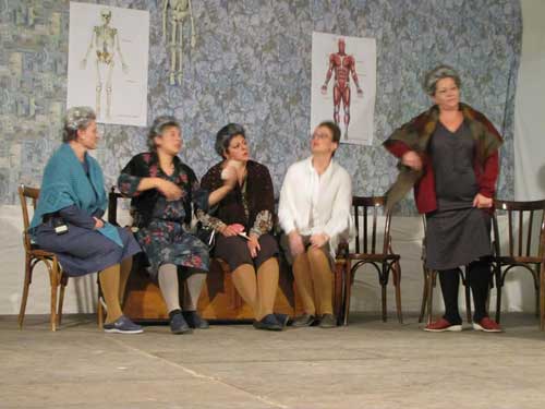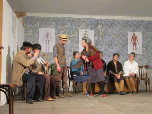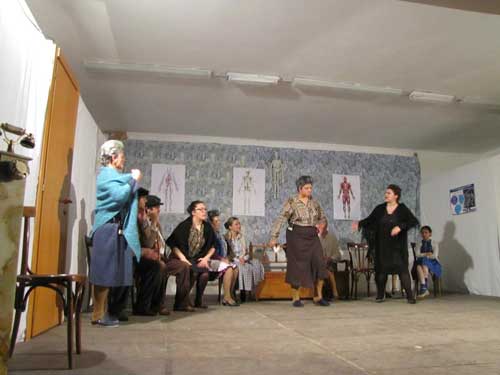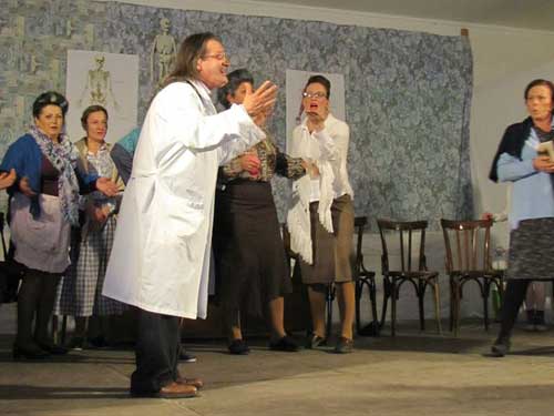 C’è da dire che il copione della commedia messa in scena in questi giorni è stato elaborato da un’autrice, Angela Campanile, che, oltre alla nomina come membro della Società di Storia patria della Puglia, vanta una ricca esperienza di ricercatrice di tradizioni popolari nel Centro Studi Giuseppe Martella, con cui ha pubblicato nel 2000 il bellissimo volume “Peschici nei ricordi” (edizioni Grenzi). La commedia della Campanile - opportunamente adattata da Giuseppe Mastromatteo e integrata dalle “battute a soggetto” delle attrici protagoniste (foto da 3 a 10), - vagamente eduardiana, proposta in vernacolo peschiciano, si divide in due atti ed è una divertente parodia di ciò che accadeva nella sala d’attesa di uno studio medico nel corso degli Anni Sessanta. Medico e medicine erano diventati da poco un servizio pubblico gratuito grazie alla “cassa mutua” e si cominciava a fare uso sia del medico che delle medicine senza risparmio: si andava dal medico anche per uno starnuto e c’era anche chi vi si recava quotidianamente.