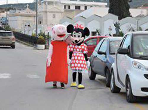 “Si prepara un fantoccio - spiega - nella cui pancia si mette di tutto, lo si carica su un asino al cui seguito c’è un chirurgo, accompagnato da un corteo di gente mascherata: la madre, la moglie, figli e parenti di ‘Carnual’. Il dottore taglia la pancia del pupazzo e ne estrae vari oggetti, fra cui un pezzo di salsiccia: solo alla fine estrae il gigantesco ‘maccherone’ (oggi rappresentato da un lungo tubo di plastica) che ha provocato l’indigestione di ‘Carnual’. Nel carnevale antico, durante l’operazione, la gente che si ammassava intorno cantava lo stornello ‘U pedë ‘u porkë (Il piede del porco).