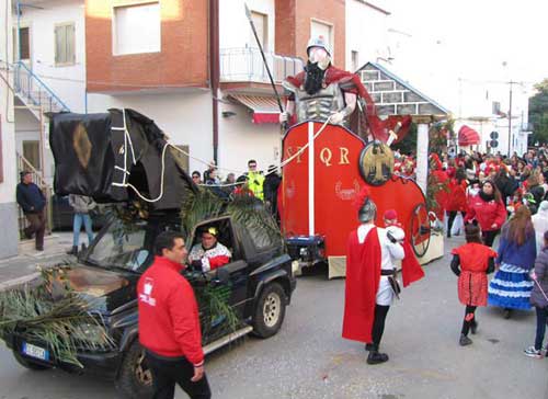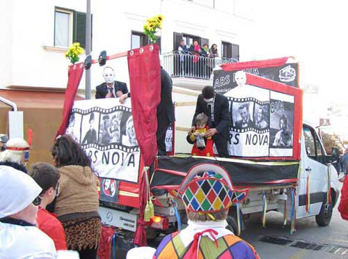 Clicca per Ingrandire Si è chiusa con orgoglio e soddisfazione, oltre le più rosee aspettative, la settima edizione del Carnevale Peschiciano. Un eccezionale successo di pubblico e critica ha coronato la sfilata conclusiva del Martedì Grasso, 17 febbraio. Un’apoteosi di carri allegorici e gruppi mascherati previsti e annunciati: dalla rievocazione tradizionale del “Carnual” di “Peschici Eventi” agli attori di “Hollywood-Il Padrino” dell'Ass. “Ars Nova”, dalla “Antica Roma” dell’Asd “Athletic Club” ai “Pirati dei Caraibi” dell’Asd “Fitness Dance”.