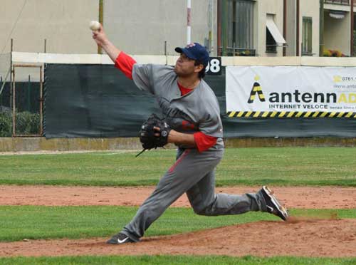 GARA2 – La seconda gara si apre e si chiude in maniera diversa. Concentrazione alta fin dalle prime battute e parità al primo gioco. Viterbo avanti al secondo inning, poi al sesto la svolta con tre punti consecutivi per Foggia. Il punto dell’1-4 al settimo e il 2-4 finale consente a “Tonno Insuperabile” di ottenere la vittoria nella gara pomeridiana. Bene Parra sul monte di lancio (foto del titolo; ndr) e sempre positivi i vari Lucena, Pompilio, Bove, Fortunato, Cufre, Iacovelli, Carbone e Maldonado.