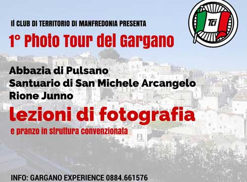 Clicca per Ingrandire Primavera, tempo di escursioni e scoperta delle bellezze del territorio. Il club di territorio Touring Club Italiano di Manfredonia, con la collaborazione dei consoli di Provincia di Foggia e Associazione Gargano Experience, presenta il “1° ‪PhotoTour‬ Touring sul Gargano”, in programma domenica 17 maggio a ‪Pulsano‬ e Monte Sant'Angelo. L'escursione prevede la visita a: Abazia di Pulsano, Santuario di San Michele Arcangelo e Quartiere Junno con una lezione di fotografia. Un imperdibile viaggio fra storia, cultura e bellezza paesaggistica.