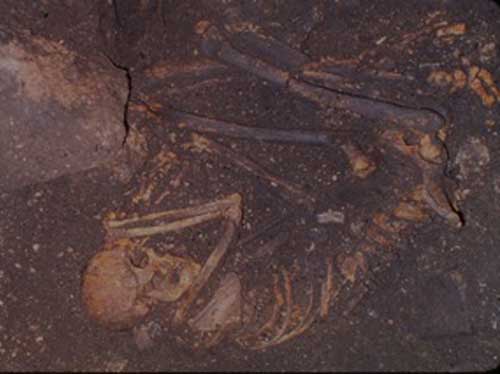 ‘Science’ parla del ritrovamento delle ossa di 22 persone, vissute intorno alla metà del 6° millennio a.C., scarnificate e mescolate con ossa di animali. Le comunità neolitiche seppellivano i morti (foto 4, by sscnet.ucla.edu) sotto o accanto le loro case o nella periferia di insediamenti. In questo caso, invece, anche i contadini di villaggi nel raggio di una ventina di chilometri portavano le ossa dei propri defunti nella camera alta della ‘Scaloria Cave’. Ha suscitato molta curiosità e attenzione il processo di scarnificazione, parte di un lungo rito di sepoltura in più fasi.