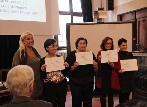 Quest’anno è stata premiata anche una scuola della Puglia: l’Istituto comprensivo “Pietrocola-Mazzini” di Minervino Murge, in provincia di Bari, col progetto “L’Europa siamo noi”. Le insegnanti che hanno promosso il gemellaggio (Vincenza Dell’Erba, Caterina Elifani, Nunzia Renna e Cristina Santomauro - foto 2; ndr), hanno lavorato per sviluppare negli alunni il sentimento di appartenenza all’Unione Europea attraverso una migliore conoscenza della storia dei diversi Stati membri, sensibilizzando i ragazzi a temi come multilinguismo e multiculturalismo. Il lavoro è stato svolto in italiano, con una buona programmazione e un’area di lavoro organizzata ottimamente in gruppi misti coi partner ma anche all'interno della scuola. Importante è stato il lavoro in team svolto dalle docenti, che hanno contribuito attivamente in ottica interdisciplinare.
