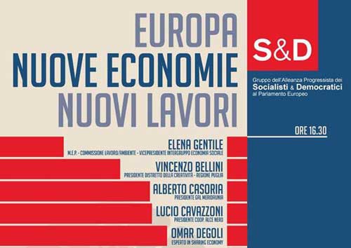 Clicca per Ingrandire Si chiama “Europa: Nuove Economie e Nuovi Lavori”, l’incontro organizzato dall’eurodeputato pugliese Elena Gentile, venerdì 18 dicembre a Cerignola, nello storico Palazzo Coccia (si potrà seguire l’evento sulla pagina facebook “Nuove economie, Nuovi lavori”), per parlare di nuovi modelli economici atti a combattere la crisi. Crisi economica e coscienza ambientale stanno influenzando sempre più i modelli economici, portando alla luce nuovi fenomeni come la ‘green economy’, la ‘sharing economic’, la ‘bikeconomics’, la ‘blue economy’, l’agricoltura sociale, sintomi di una sempre maggiore sensibilità da parte dei consumatori verso nuovi modelli di produzione che sviluppano a loro volta nuovi lavori. Mobilità sostenibile, riuso dei materiali, sostenibilità di nuovi modelli di rigenerazione urbana, sostenibilità e finalità sociale della ristorazione e dei prodotti enogastronomici, pongono al mercato nuove sfide e nuove e più informate forme di consumo.