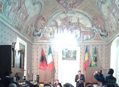 Clicca per Ingrandire Ho letto da qualche parte che Palazzo Recupero (foto 2 sotto; ndr) di Martina Franca, ultimato tra la fine del Settecento e l’inizio del secolo successivo, si caratterizza per il rosso pompeiano spalmato sulla facciata. Il vicepresidente dell’Associazione Regionale Pugliesi di Milano, Francesco Lenoci, mi ha descritto gli interni con l’entusiasmo che gli è congeniale. Io purtroppo questo edificio non l’ho mai visto. Ma mi propongo di colmare al più presto la lacuna. Anche perché ne sento tanto parlare, soprattutto per il salotto culturale che Teresa Gentile (foto del titolo e 1, con Lenoci) vi ha da tempo insediato. Ed è di questo che ho voglia di parlare, perché mi piacciono i luoghi in cui le persone s’incontrano, discutono, offrono le proprie esperienze e ne ricevono, si confrontano, si raccontano con schiettezza, espongono le opere che hanno realizzato e meditano su quelle degli altri. In una società come la nostra, disarticolata, poco comunicativa, in cui molti di noi sembrano deserti senza oasi, il salotto di Teresa è da ammirare.