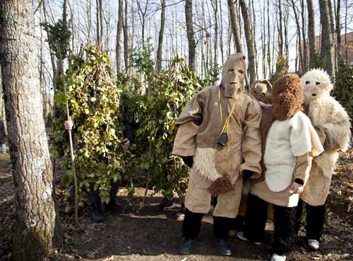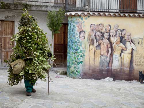 Clicca per Ingrandire Si terrà sabato 6 e domenica 7 febbraio il Carnevale di Satriano in Basili-cata. In questo paesino del Parco Nazionale dell’Appennino Lucano da se-coli si ripete una tradizione suggestiva e singolare: le persone si vestono da alberi. La maschera tipica è denominata ‘Rumita’ (da ‘eremita’) ed è un uomo completamente ricoperto di edera, tanto da essere irriconoscibile, che tiene fra le mani un bastone con all’apice un ramo di pungitopo.