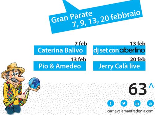 Clicca per Ingrandire Ieri, oggi, domani. L’evoluzione del Carnevale di Manfredonia e delle sue mille sfaccettature, dalle origini fino ai giorni nostri, sarà il fulcro di “Amarcord Carnevale”, talk show informale - condotto dal giovane giornalista Felice Sblendorio con la partecipazione di Franco Rinaldi, storico locale e grande mattatore, conduttore e protagonista del Carnevale di Manfredonia - in programma domani a partire dalle 18,30 al Cafè des Artistes. A pochissimi giorni dalla prima gran parata di domenica 7 febbraio, in concomitanza con l’ultimo giovedì grasso precedente all’inizio del Carnevale, andrà in scena un viaggio nelle memorie, nelle culture e nelle tradizioni locali per scoprire aneddoti, racconti inediti e curiosità su questa storica e coloratissima kermesse del territorio.