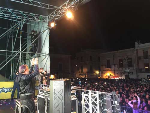Oltre al “Brasilian Show”, all’esibizione live di “I Merli” e la conduzione frizzante degli speaker Domik, Max e Daniela Di Cosola, l’attrazione della “Notte Colorata” non poteva che essere la presenza di Pio&Amedeo e dj Albertino, attesi e osannati dagli spettatori giunti anche da più parti del Mezzogiorno d’Italia. A fare scatenare la piazza sui pezzi dance più ritmati del momento e della storia della disco music, ci ha pensato Albertino, direttamente da Radio Deejay, capace per oltre un’ora, di far ballare e cantare a squarciagola all’insegna del sano divertimento. Dalla consolle centrale di Piazza Duomo è partito un ritmo che è andato sempre più crescendo sotto gli occhi di un Albertino incredulo per l’elevatissimo numero di persone che stavano ballando all’unisono e in armonia (foto 4-5).