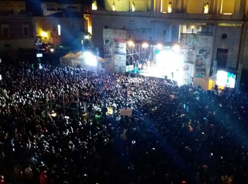 Non solo la Gran Parata di Carri allegorici (foto 1 sotto; ndr), Gruppi mascherati e Scuole di ogni ordine e grado, tutti abili a sfoggiare estro e artigianalità d’alto livello, ma una serie di eventi e appuntamenti dislocati lungo tutta la notte bianca più ‘pazza’ di Puglia, il cui culmine è stato “Lo Show” in Piazza Duomo coi superospiti Pio&Amedeo (foto 2) e dj Albertino (foto 3) che hanno mandato in visibilio le migliaia di spettatori presenti. Più di tre ore di spettacolo con scenografie ed effetti speciali che hanno contribuito a rendere magico e indimenticabile un sabato sera invernale, sotto un cielo terso e stellato a fare da cornice a una grande festa pubblica a portata di tutte le età e gusti. Tanto sano divertimento in pieno stile carnascialesco, così spensierato e coinvolgente da tenere incollato un instancabile pubblico in piazza fino a tarda notte.