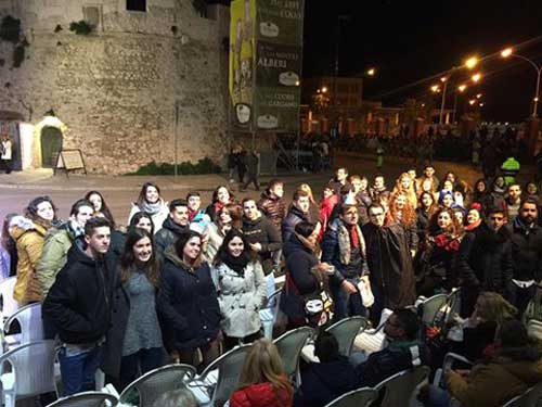 Ma il 63° Carnevale di Manfredonia deve ancora celebrare il suo ultimo capitolo. Infatti, il gran finale si svolgerà sabato 20 febbraio, a partire dalle 20, nello Stadio “Miramare” per la premiazione dei vincitori dei concorsi e il concerto live gratuito di Jerry Calà. Intanto si registra che il Carnevale non ha confini ed è sempre più di ampio respiro. Perché non è stata una festa semplicemente pugliese in quanto ha superato i confini regionali abbracciando l’Europa e le giovani generazioni. Nel centro storico della naturale porta del Gargano, in occasione della kermesse dalla forte attrazione culturale e turistica, sono arrivati infatti più di cento studenti europei (foto 6), studenti Erasmus dell’Università degli Studi di Foggia.