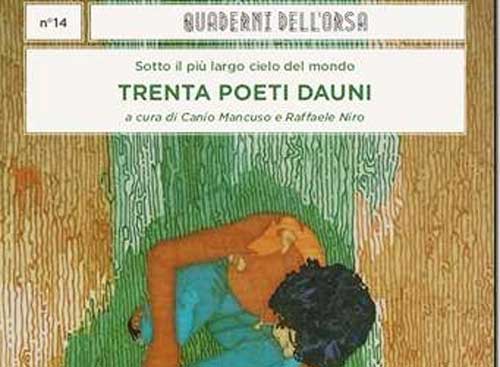 Il “Quaderno” n. 14, l’ennesimo che la casa editrice salentina sperimenta, raccoglie i versi di trenta poeti dauni del 1900: Marino Piazzolla, Francesco Paolo Borazio, Cristanziano Serricchio, Joseph Tusiani, Emanuele Italia, Antonio Cignarella, Giuseppe Bernardo Annese, Giovanni Scarale, Maria Teresa Savino, Michele De Padova, Michele Urrasio, Emilio Coco, Giovanni Dotoli, Vincenzo Luciani, Francesco Granatiero, Antonio Stuppiello, Sergio D’Amaro, Enrico Fraccacreta, Claudio Damiani, Caterina Davinio, Enza Armiento, Vito M. Bonito, Elina Miticocchio, Salvatore Ritrovato, Marco Franco D’Astice, Lucio Toma, Antonio Vigilante, Sergio Pasquandrea, Antonio Bux, Marco Rinaldi.