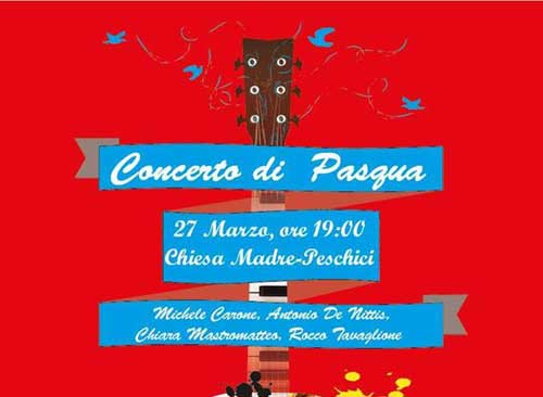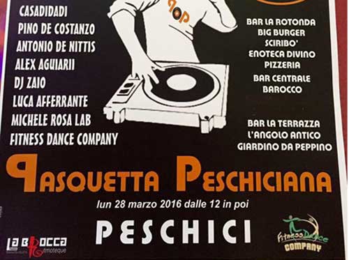 Alle 19, infatti, Antonio De Nittis, Rocco Tavaglione, Michele Carone e Chiara Mastromatteo eseguiranno brani di musica moderna e classica in un Concerto di Pasqua fatto di note espresse dai loro strumenti preferiti: pianoforte, sax soprano e chitarra. Lunedì 28 sarà la volta di un ‘tam-tam’ musicale che dalle 12 in avanti rimbalzerà in C.so Garibaldi, opera di dj allenati a divertire, in tutti i sensi, un pubblico esigente. Saranno così allestite tre postazioni che trasformeranno le rispettive zone di competenza, e le immediate adiacenze, in una festosa discoteca all’aperto. Da segnalare, fra gli organizzatori, il ritorno al proscenio dell’intrattenimento musicale peschiciano - e l’evento ci conforta alquanto - di Gianni Tavaglione, alias “Gianni Grecale”.
